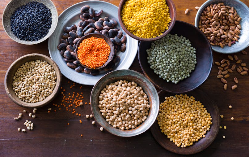 100 g de légumineuses cuites apportent de 5,6 à 10 g de protéines, ce qui équivaut à 50 g de viande ou de poisson ! En mettre au menu permet ainsi de réduire, voire de remplacer les produits animaux, notamment la viande rouge, dont il est conseillé d’abaisser la consommation. « Attention cependant : leurs protéines sont incomplètes, c’est-à-dire qu’elles ne renferment pas tous les acides aminés essentiels à l’organisme. Pour bénéficier d’un apport protéique complet et de qualité, il faut les associer à des céréales (quinoa, boulgour, semoule, riz…) dans la même journée.